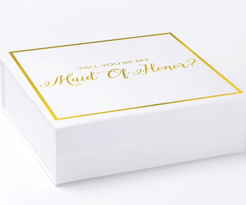 Will You Be My maid of honor? Proposal Box White - Border - No ribbon