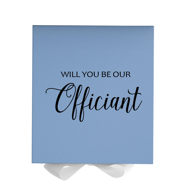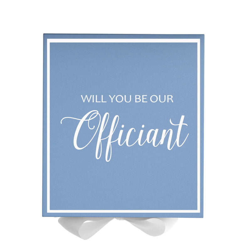 Will You Be our Officiant? Proposal Box Light Blue w/ white Bow- No Border