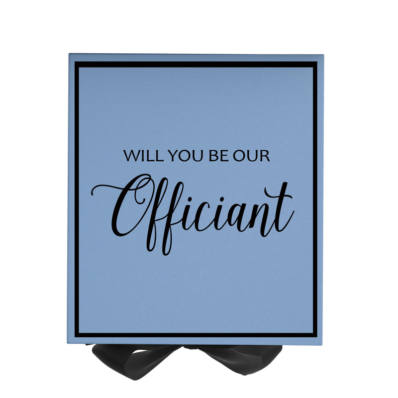 Will You Be our Officiant? Proposal Box Light Blue w/ Black Bow- No Border