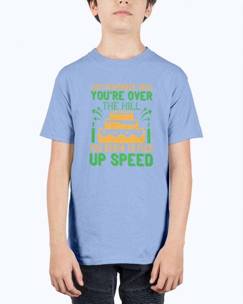 Just remember, once you're over the hill, you begin to pick up speed- Birthday - Youth Tee Unisex