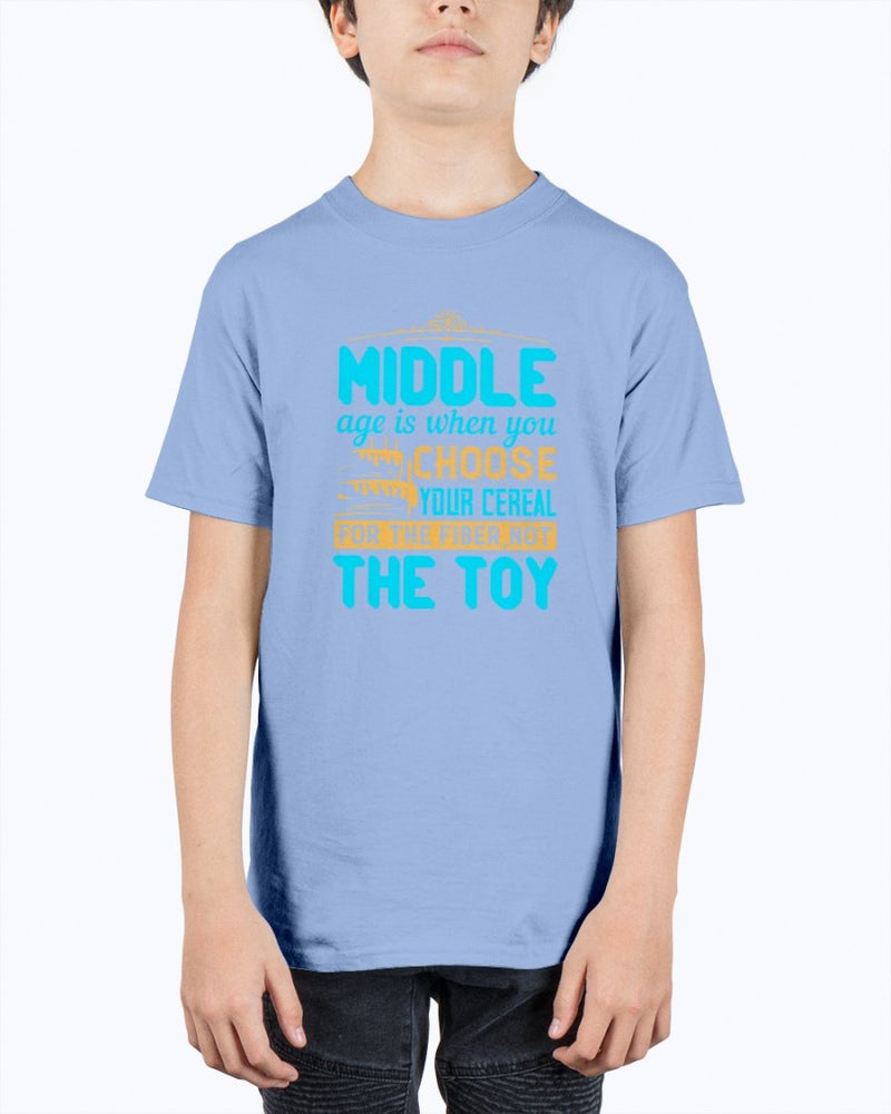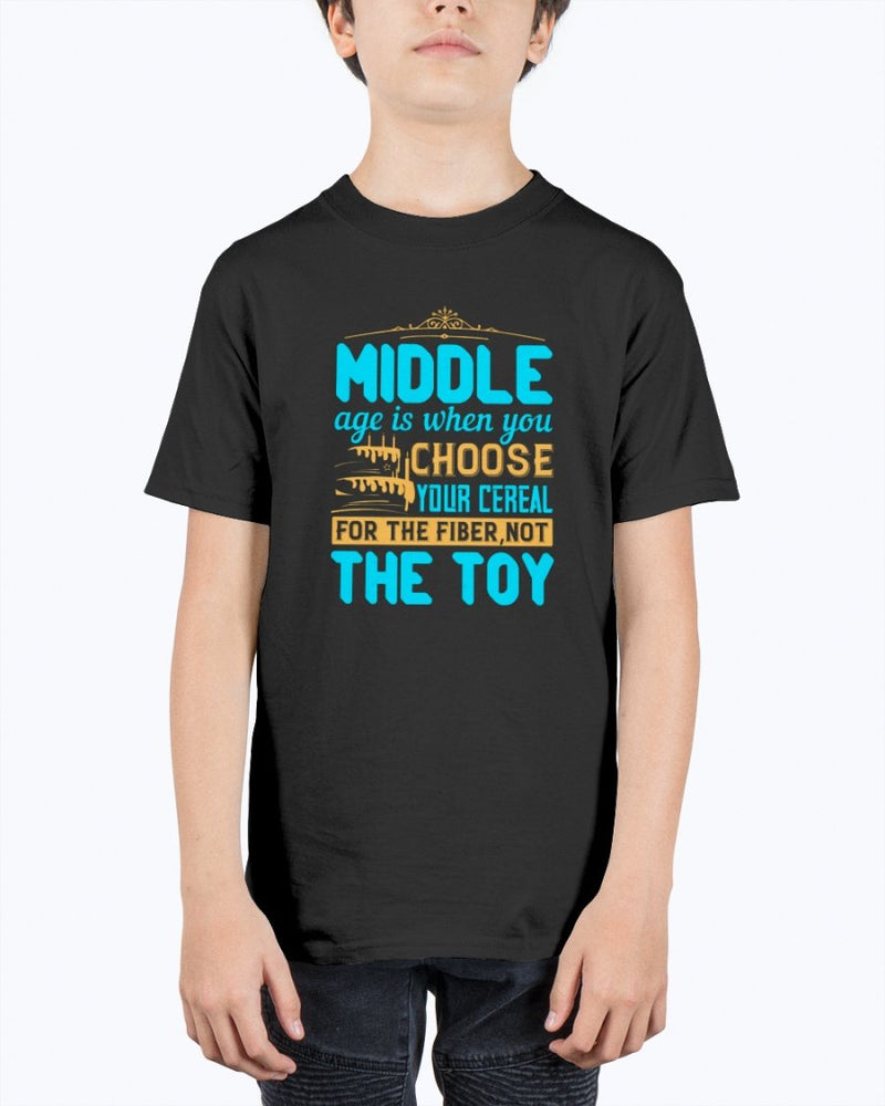 Middle age is when you choose your cereal for the fiber, not the toy- Birthday - Youth Tee Unisex