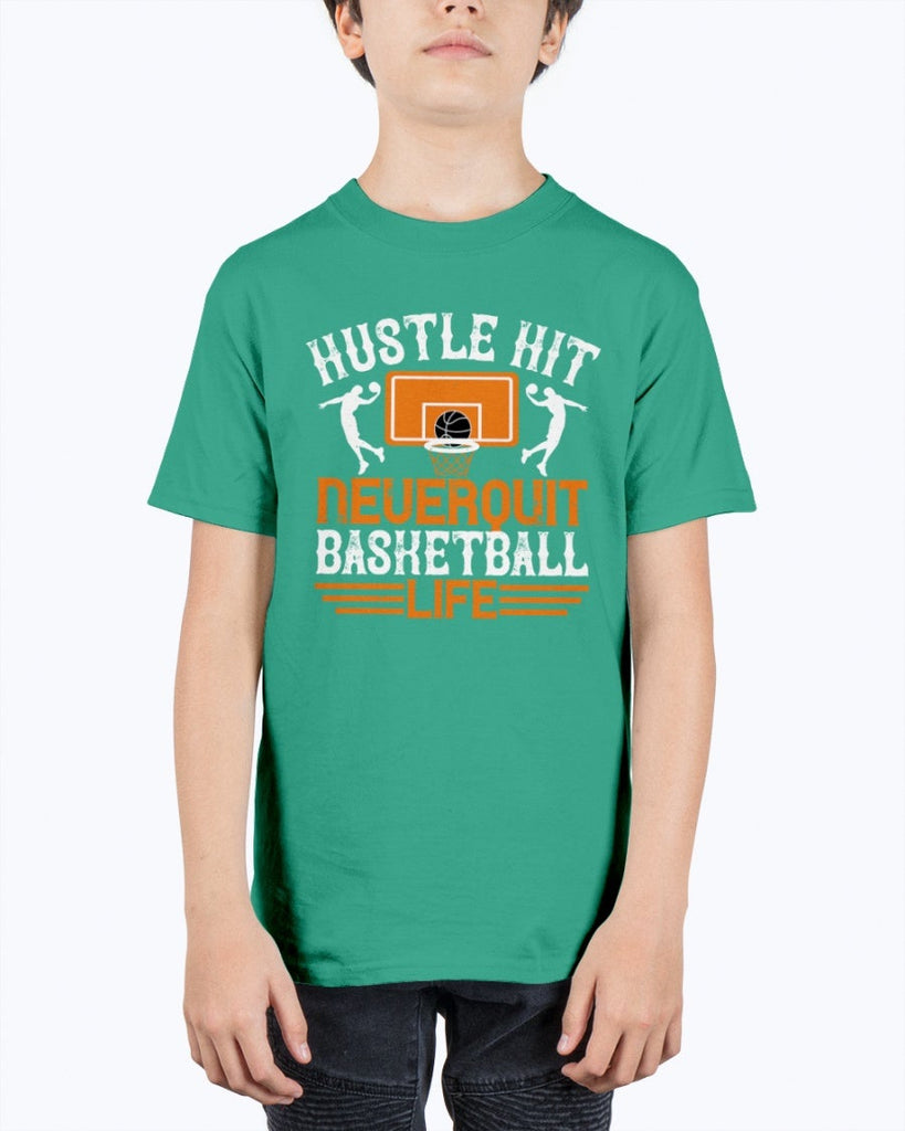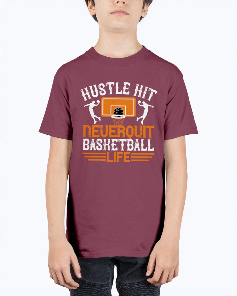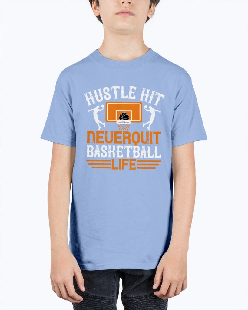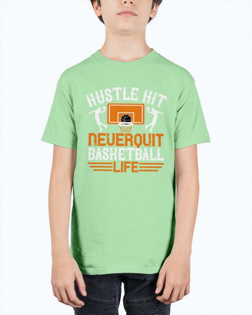 Hustle, hit. Never quit basketball life- Basketball - Youth Tee Unisex