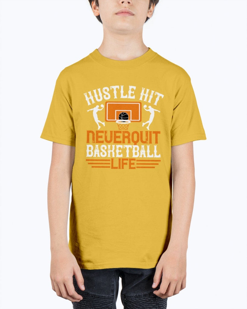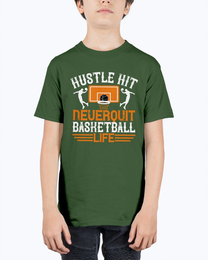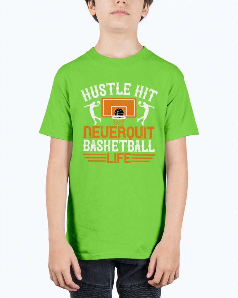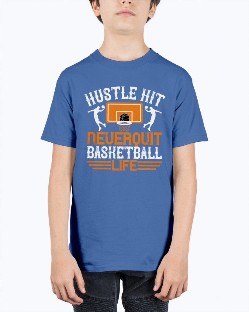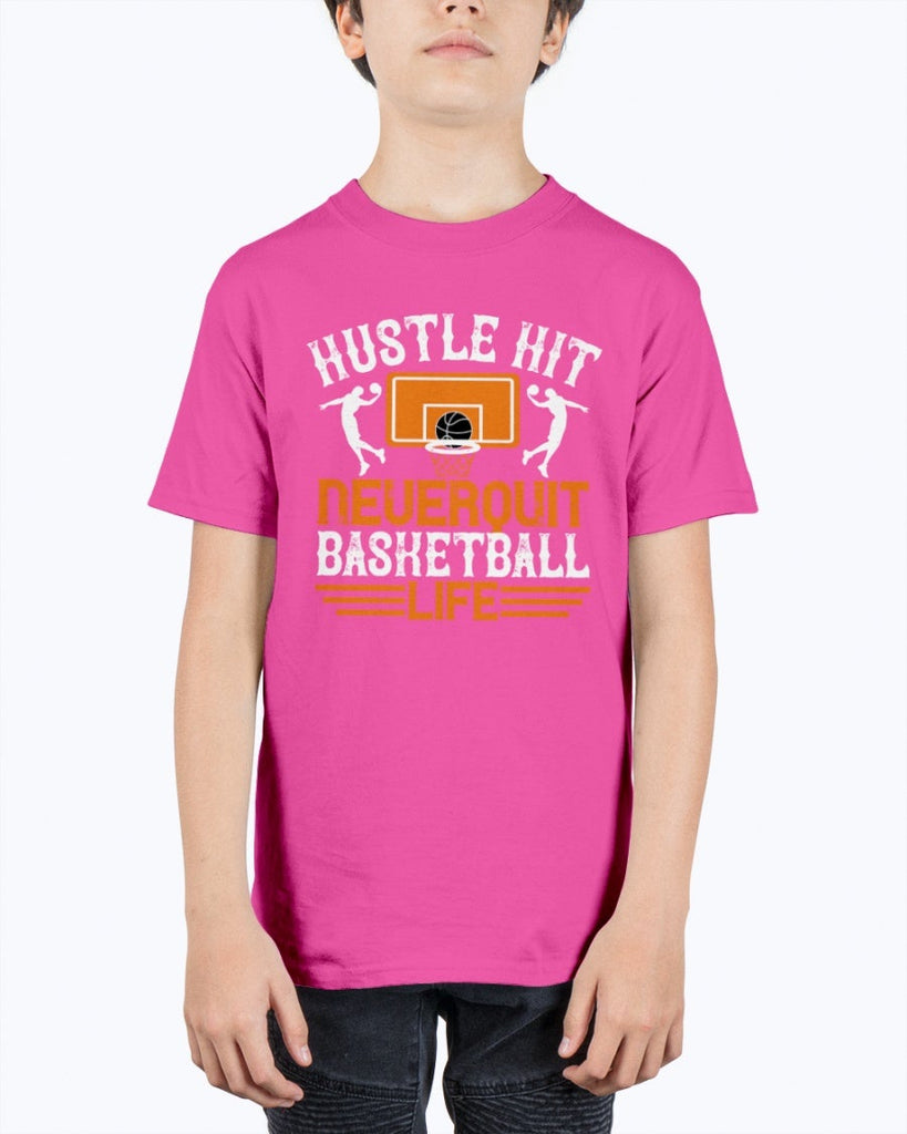 Hustle, hit. Never quit basketball life- Basketball - Youth Tee Unisex