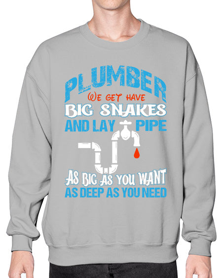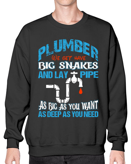 Plumber we get have big snakes and lay pipe as big as you want as deep as you need 1325# - plumber- Sweatshirt - Crew