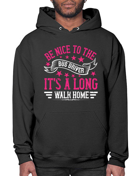 be nice to me its a long walk home Style 596# - Bus Driver- Hoodie