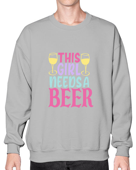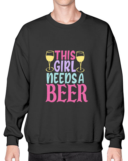 this girl needs a beer 432# - beer- Sweatshirt - Crew