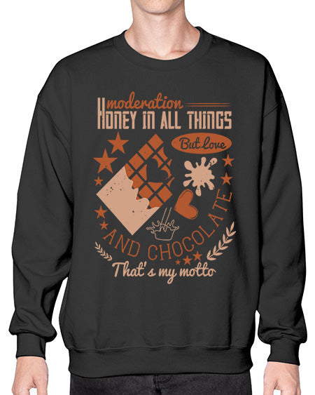 moderation honey in all things but love and chocolate thats my motto 337# - chocolate- Sweatshirt - Crew