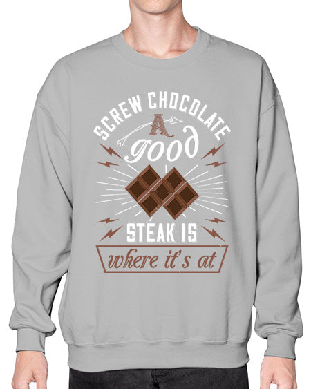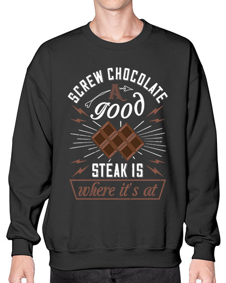 screw chocolate a good steak is where its at 384# - chocolate- Sweatshirt - Crew