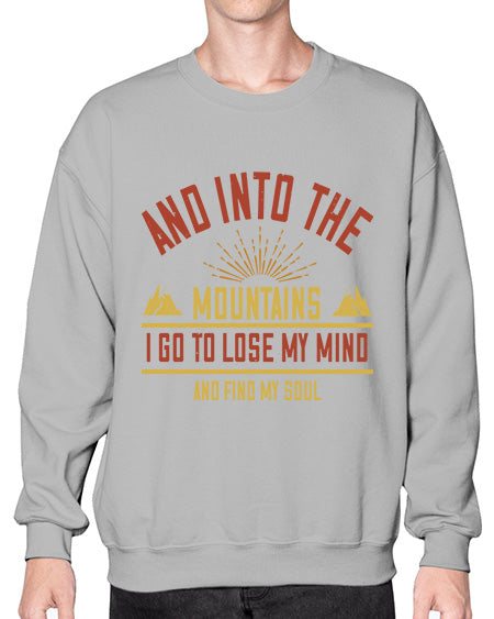 and into the mountains i go to lose my mind and find my soul 324# - mountain valcano hill- Sweatshirt - Crew