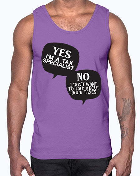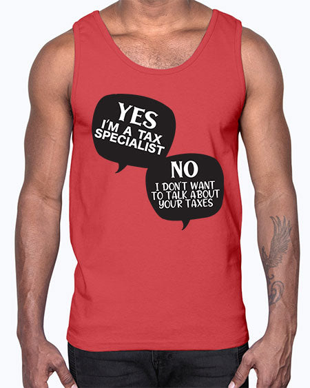 yes im a tax specialist no i dont want to talk about your taxes 1674#- accountant- Cotton Tank