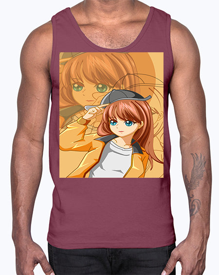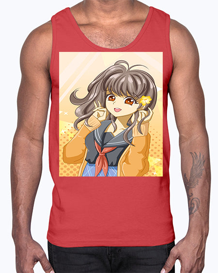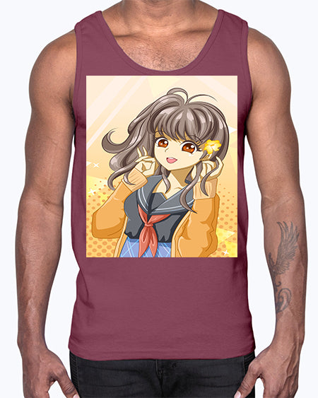 A beautiful and happy girl back to school 90#- anime- Cotton Tank