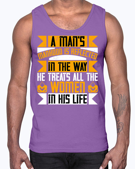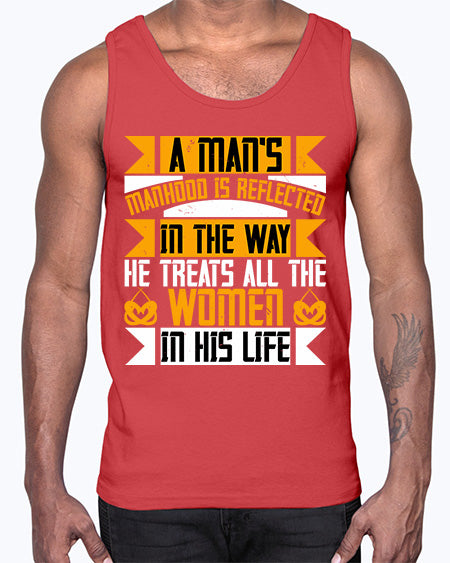 A man’s manhood is reflected in the way he treats all the women in his life Style 91#- womens day- Cotton Tank