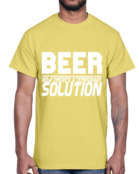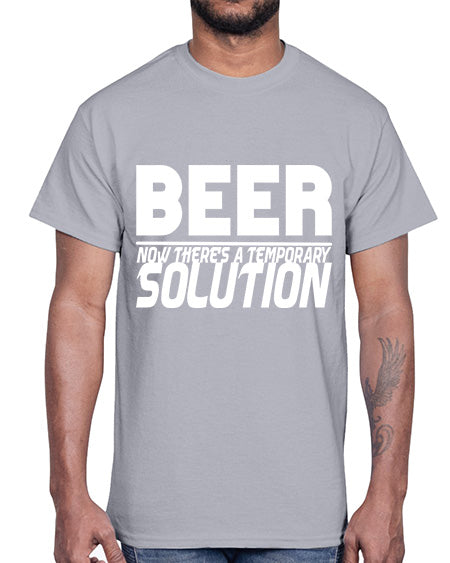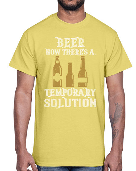 beer now theres a temporary solution 659#- beer- Cotton Tee