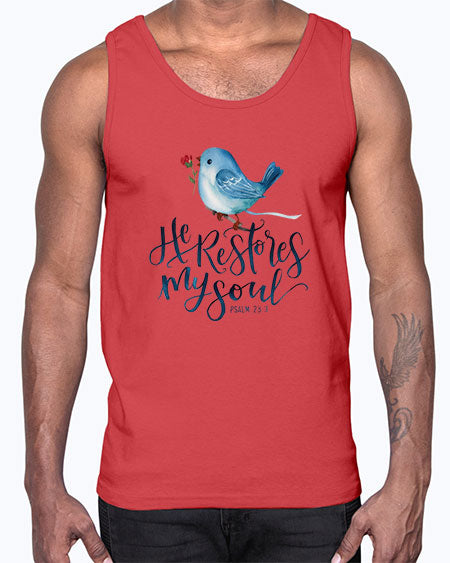 he restores my soul 39#- birds- Cotton Tank