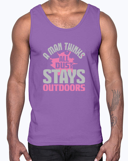 A man thinks all dust stays outdoors Style 14#- cleaner- Cotton Tank
