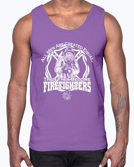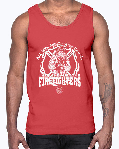 All men are created equal then a few become firemen Style 568#- fire fighter- Cotton Tank