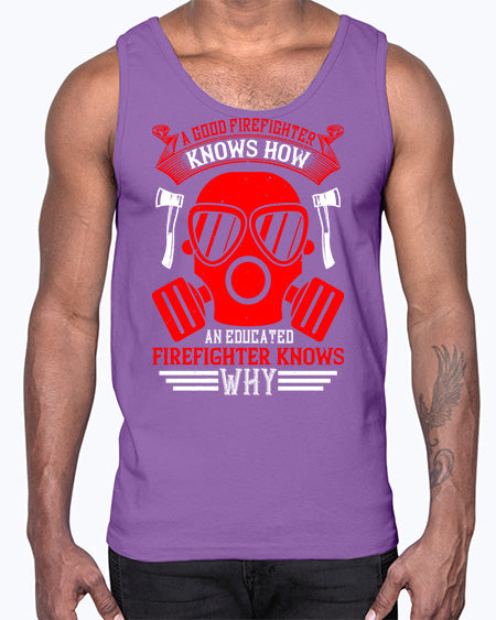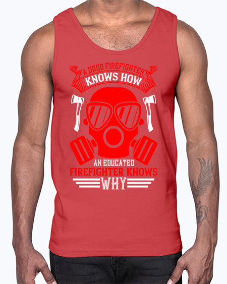 A good firefighter knows how an educated firefighter knows why Style 555#- fire fighter- Cotton Tank