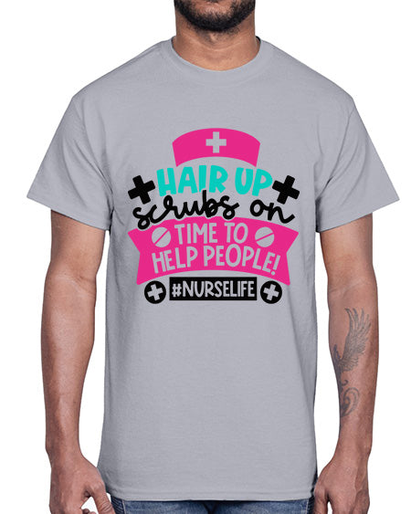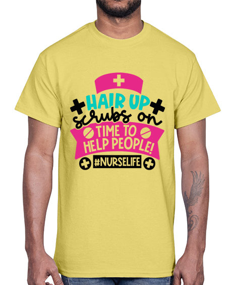 Hair Up Scrubs On Time To Help People Nurselife Style Style 827#- nurse- Cotton Tee
