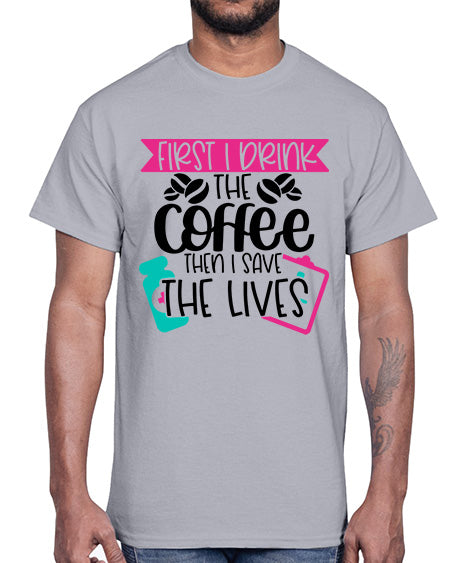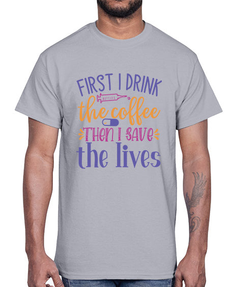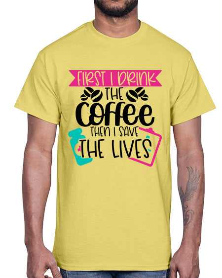 First I Drink The Coffee Then I Save The Lives Style Style 802#- nurse- Cotton Tee