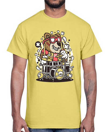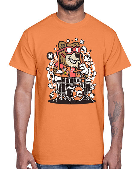 Bear drummer 14#- cartoon animals- Cotton Tee