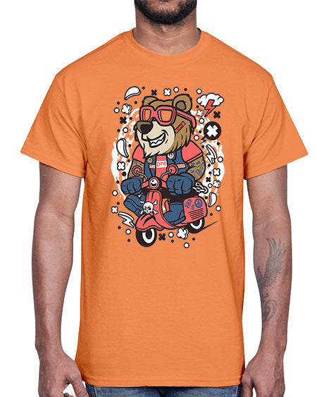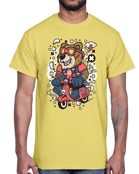 Bear scooterist 16#- cartoon animals- Cotton Tee