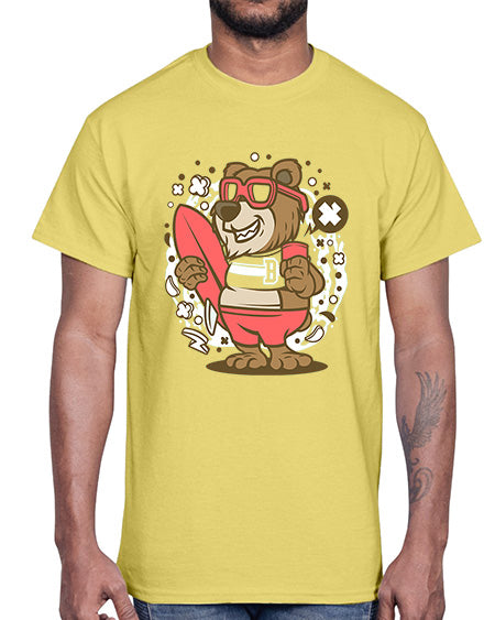 Bear surfing 17#- cartoon animals- Cotton Tee