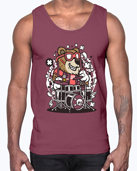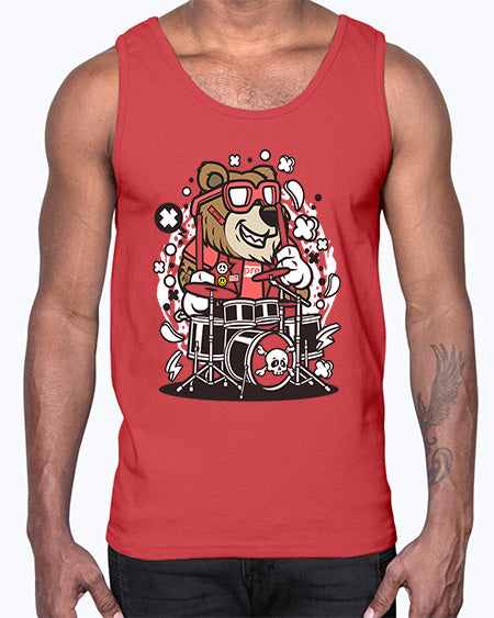 Bear drummer 14#- cartoon animals- Cotton Tank