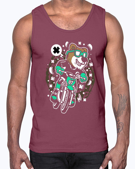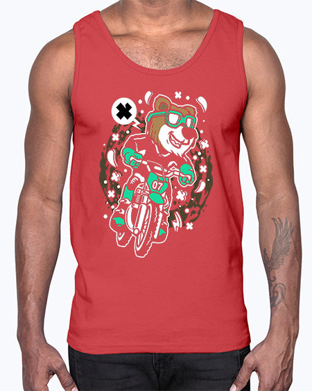 Bear motocross rider 15#- cartoon animals- Cotton Tank