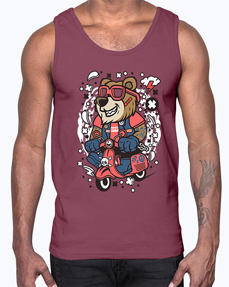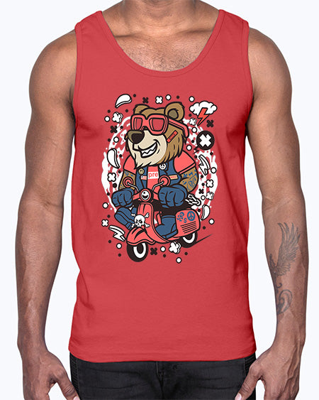 Bear scooterist 16#- cartoon animals- Cotton Tank