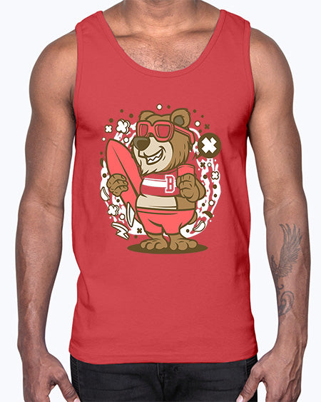 Bear surfing 17#- cartoon animals- Cotton Tank