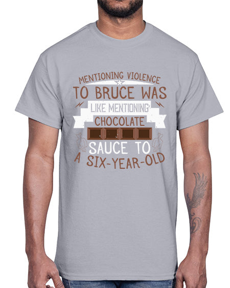 mentioning violence to bruce was like mentioning chocolate sauce to a sixyearold 335#- chocolate- Cotton Tee