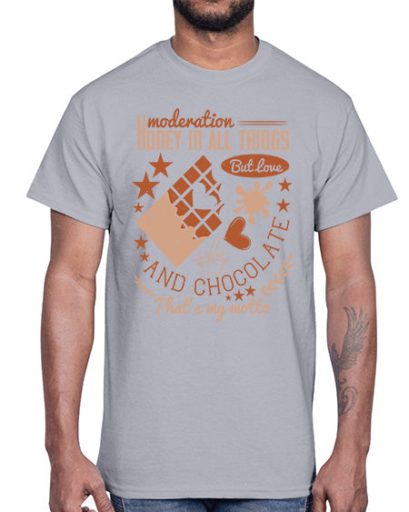 moderation honey in all things but love and chocolate thats my motto 337#- chocolate- Cotton Tee