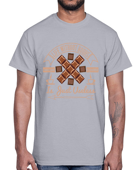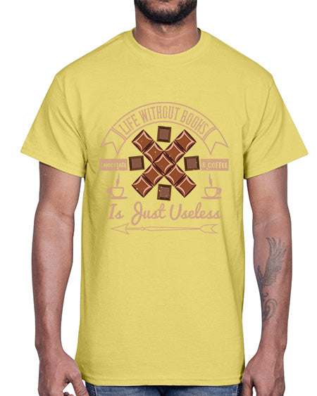 life without books chocolate coffee is just useless 318#- chocolate- Cotton Tee