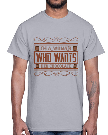 im a woman who wants her chocolate 273#- chocolate- Cotton Tee