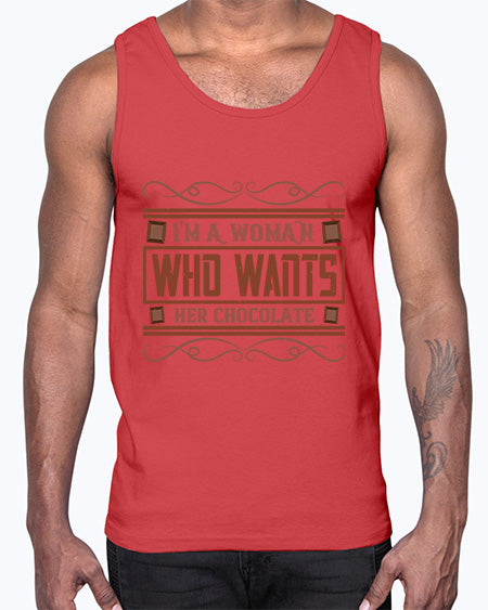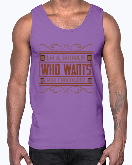 im a woman who wants her chocolate 273#- chocolate- Cotton Tank