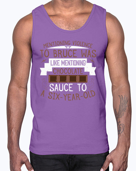 mentioning violence to bruce was like mentioning chocolate sauce to a sixyearold 335#- chocolate- Cotton Tank