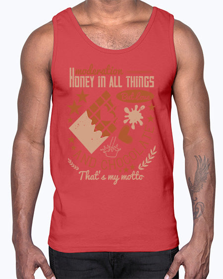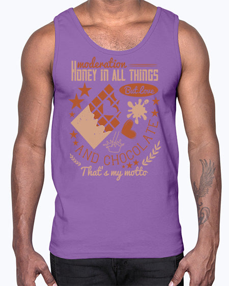 moderation honey in all things but love and chocolate thats my motto 337#- chocolate- Cotton Tank