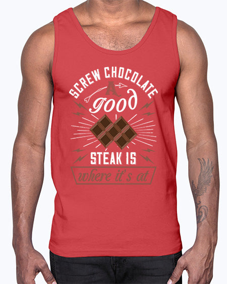 screw chocolate a good steak is where its at 384#- chocolate- Cotton Tank