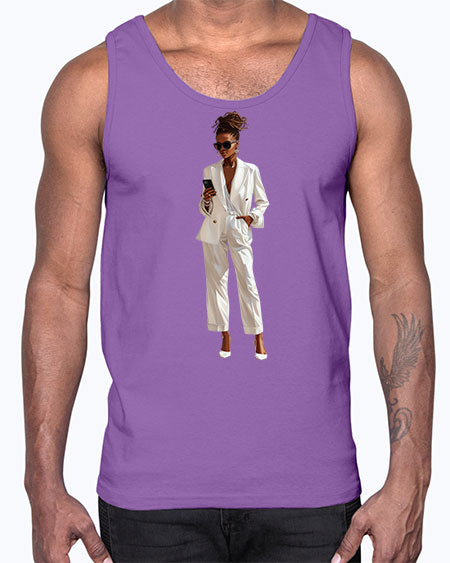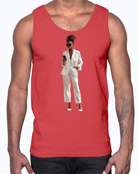 fashion girl in white 77#- fashion- Cotton Tank