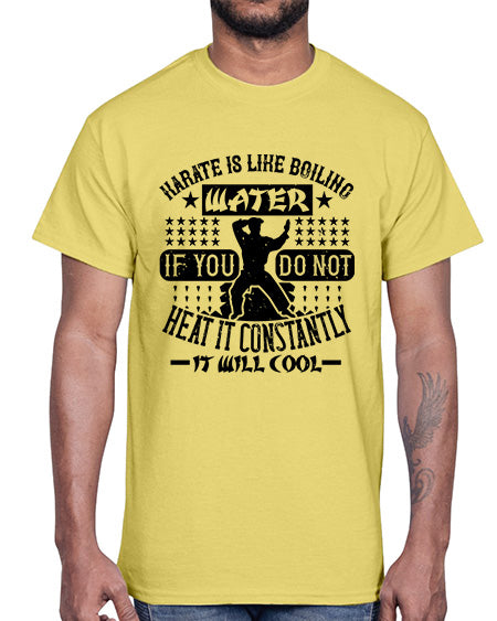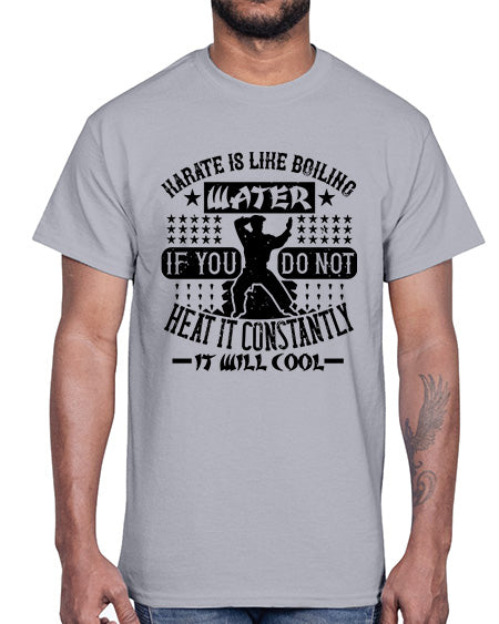 karate is like boiling water if you do not heat it constantly it will cool 394#- karate MMA- Cotton Tee