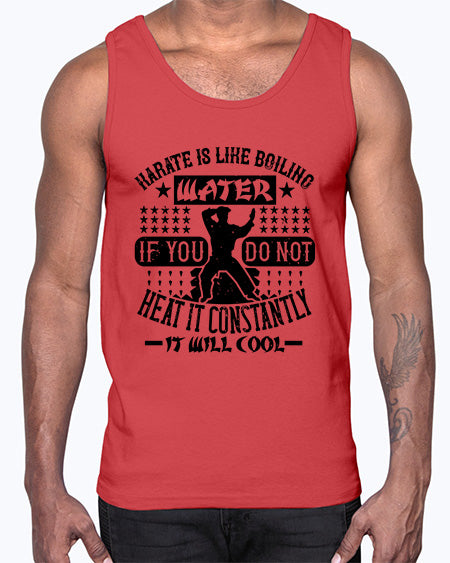 karate is like boiling water if you do not heat it constantly it will cool 394#- karate MMA- Cotton Tank