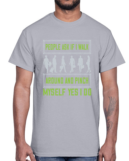 people ask if i walk around and pinch myself yes i do 489#- walking- Cotton Tee