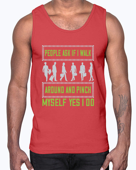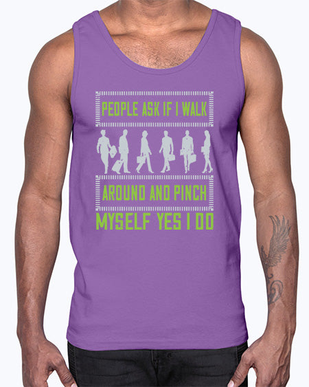 people ask if i walk around and pinch myself yes i do 489#- walking- Cotton Tank