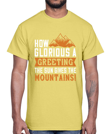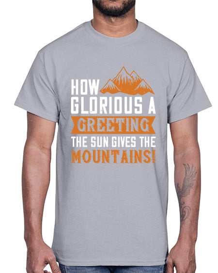 how glorious a greeting the sun gives the mountains 912#- mountain valcano hill- Cotton Tee