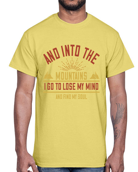 and into the mountains i go to lose my mind and find my soul 324#- mountain valcano hill- Cotton Tee