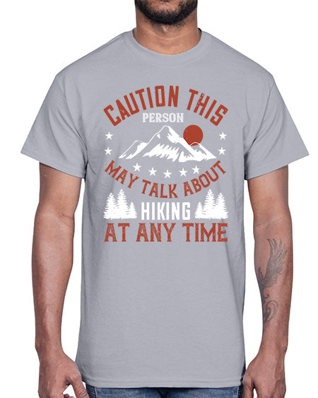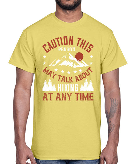 caution this person may talk about hiking at any time 550#- mountain valcano hill- Cotton Tee