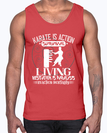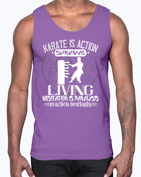 karate is action survival living hesitation is paralysis reaction mortality 391#- karate MMA- Cotton Tank