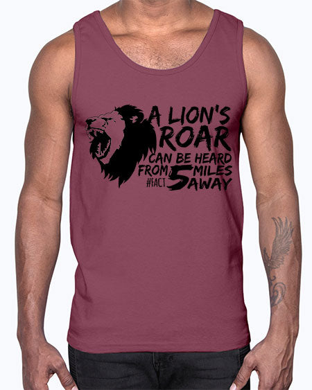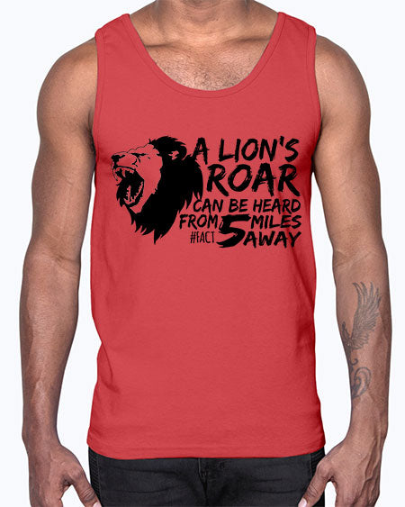 a lions roar can be heard from five miles away- lion- Cotton Tank