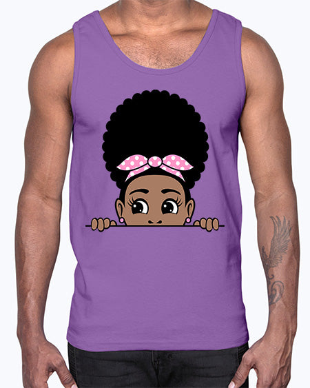 afro puff bandana girl peekaboo 85#- black girls or women- Cotton Tank