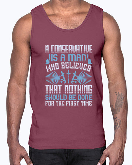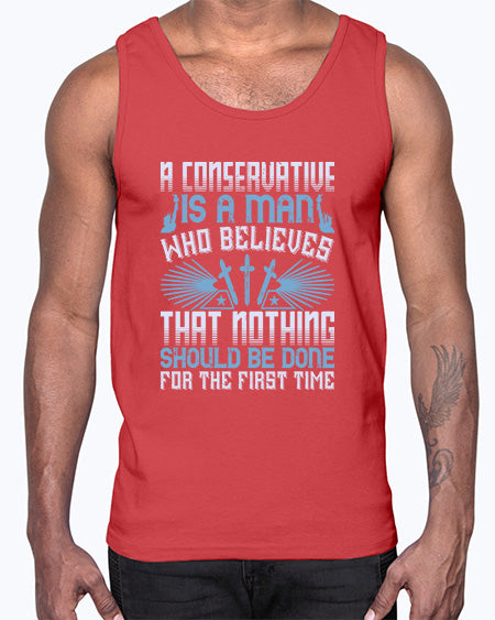 A conservative is a man who believes that nothing 176#- graphic- Cotton Tank
